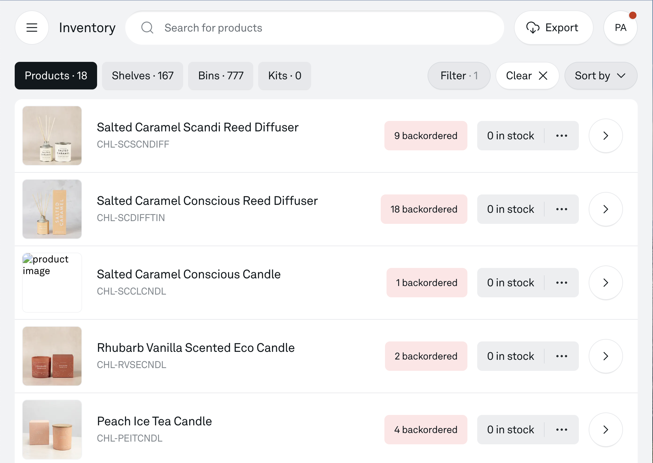 The inventory overview list can now be filtered by backordered product. This helps to get a quick overview of missing items that are required to fulfill open orders.