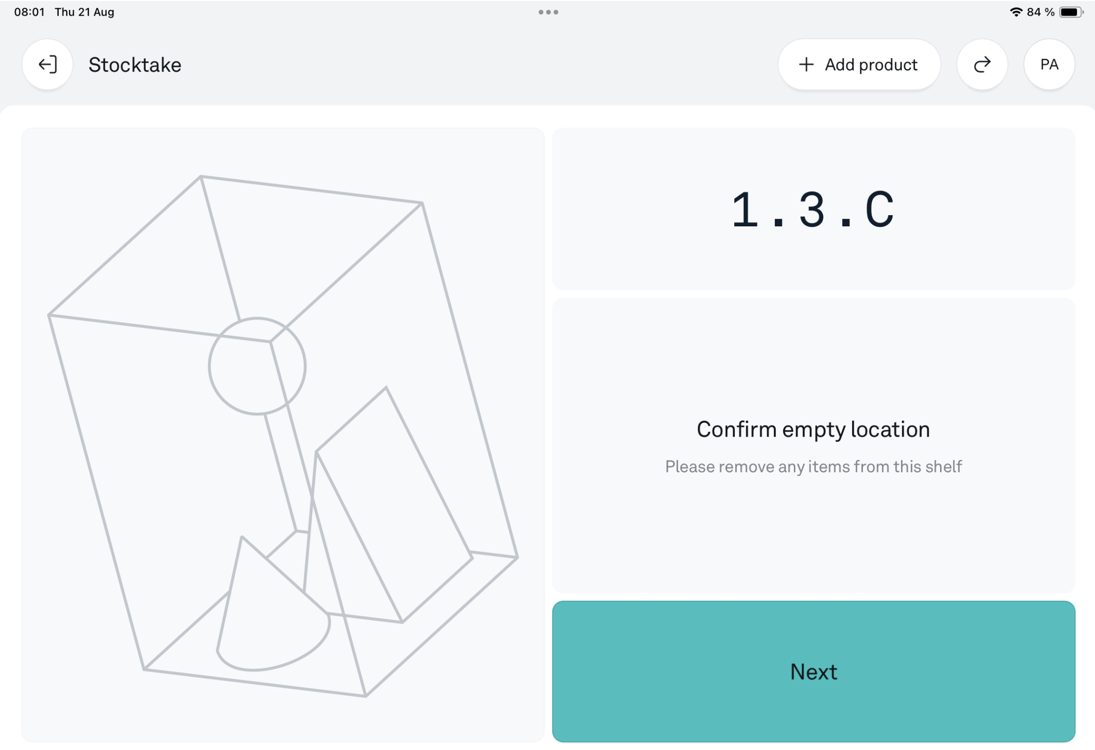 When stocktaking the shelf locations, you can now add products on the fly to an empty shelf location. There is a new "+ Add product" button in the header if you need to store a product during the stocktaking process.