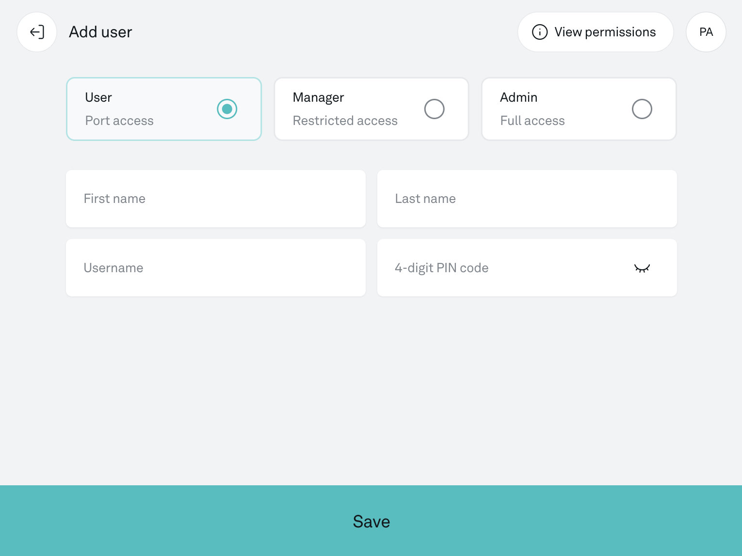 When adding new users with port access only, an email is no longer required. For Manager and Admin accounts, email is still required for login to the Pio Admin section.