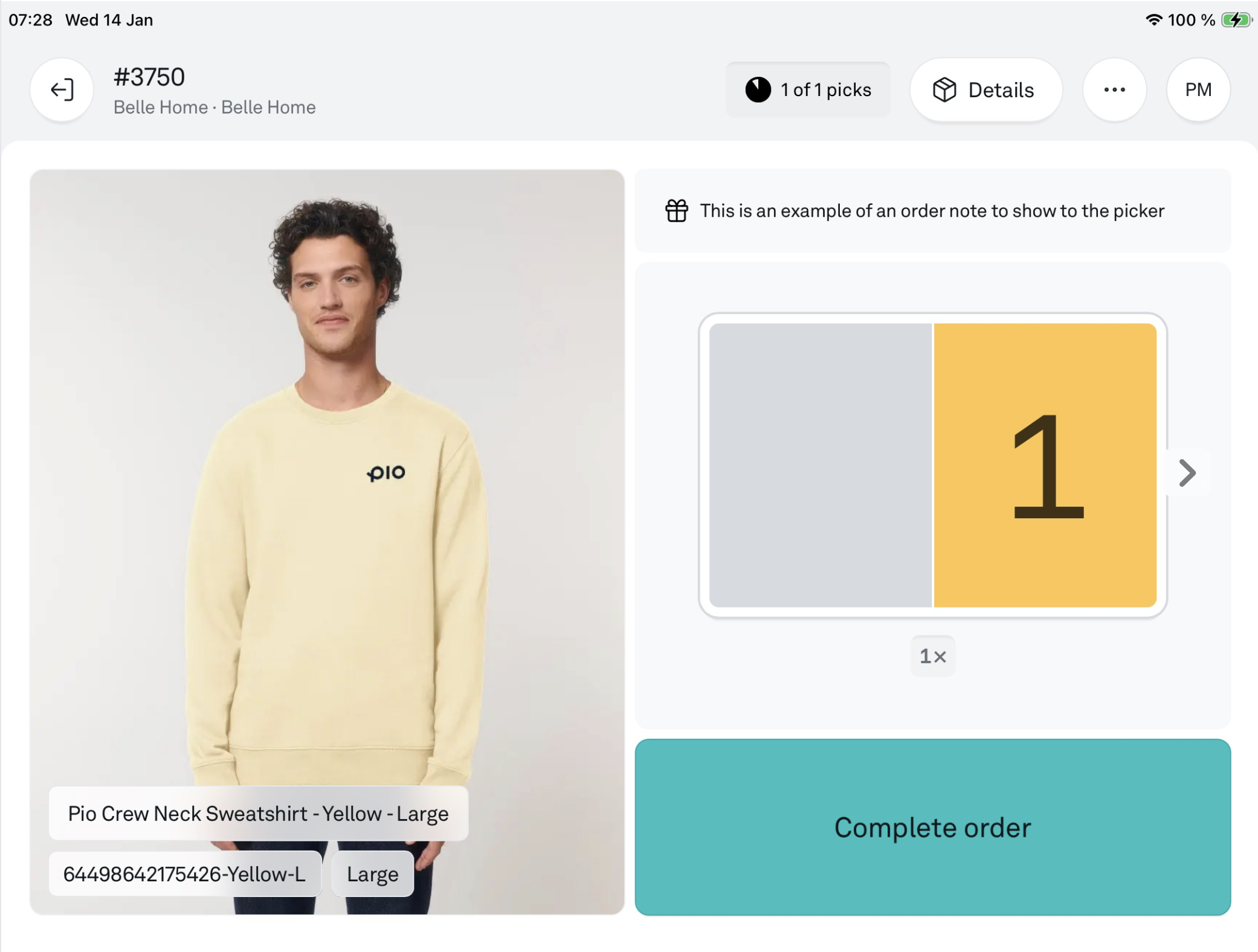 If no further picks remain for the order, you will be directed to the ‘Complete order’ screen.