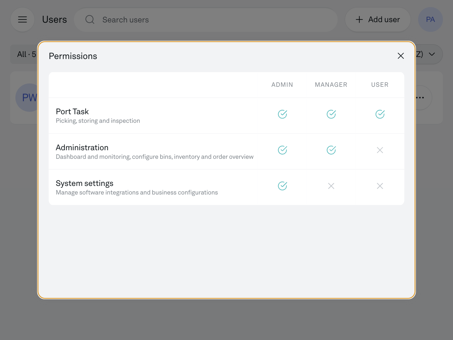 An Admin user can access and update all the settings for the app: User management, Software integrations, Prioritization rules for order prioritization ++