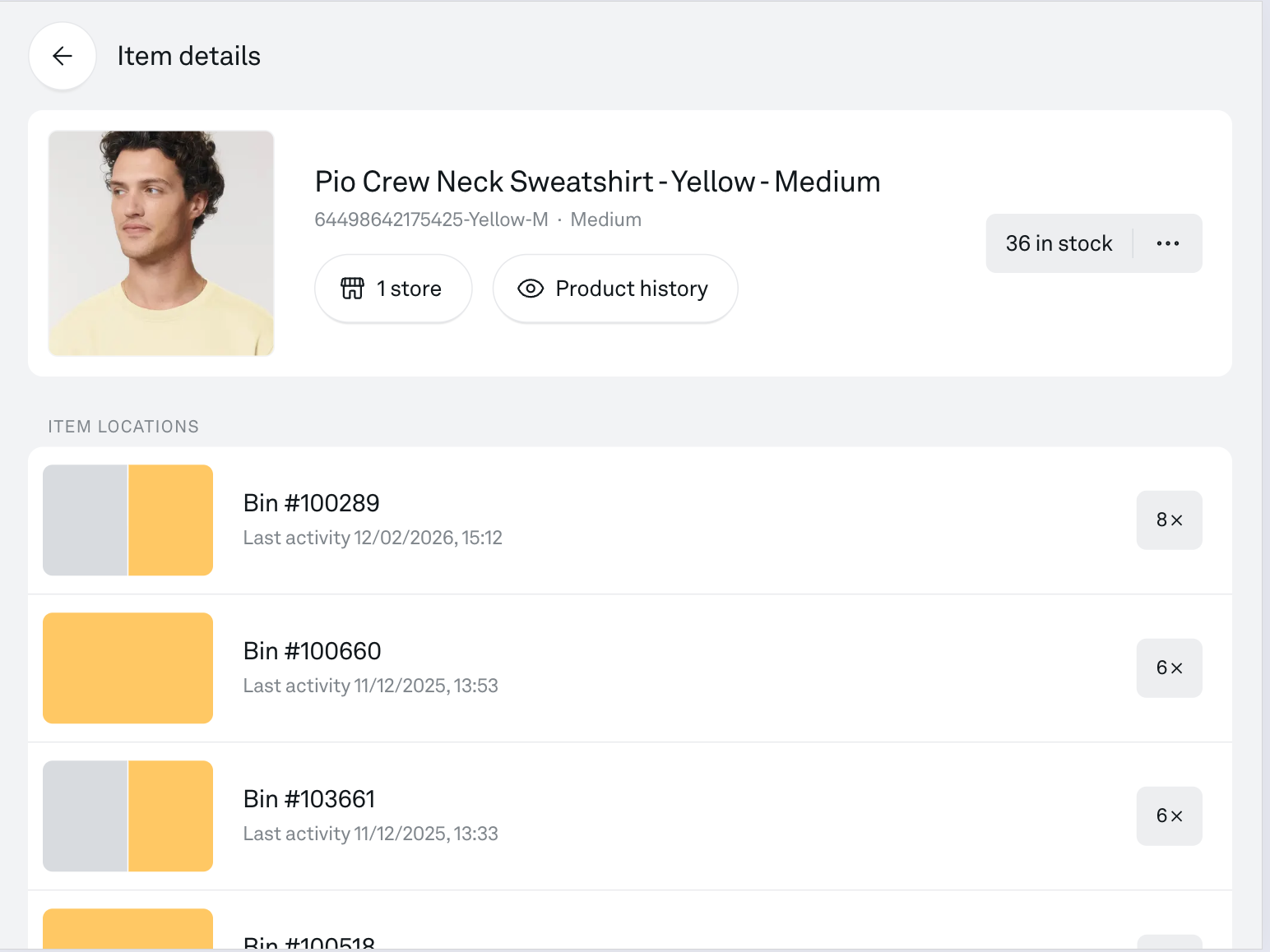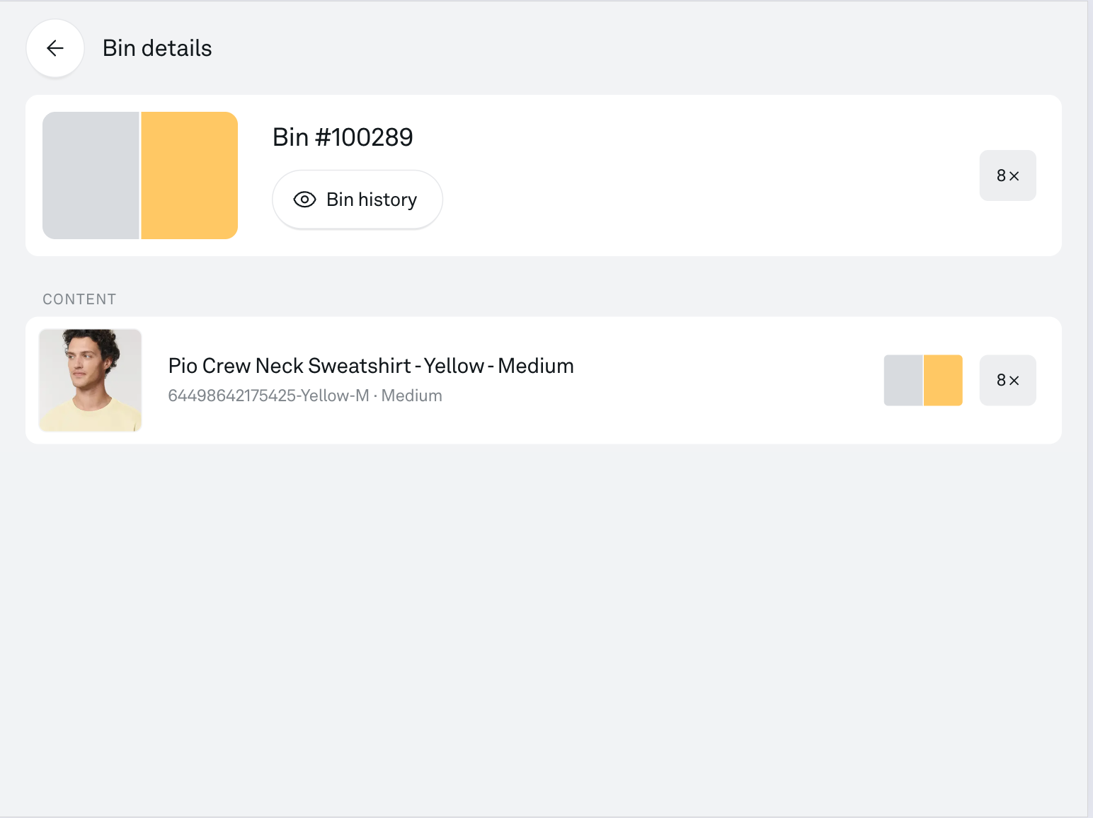 From the bin section containing the specific product, you can access details on each bin. This will give you a list of all contents in this specific bin.