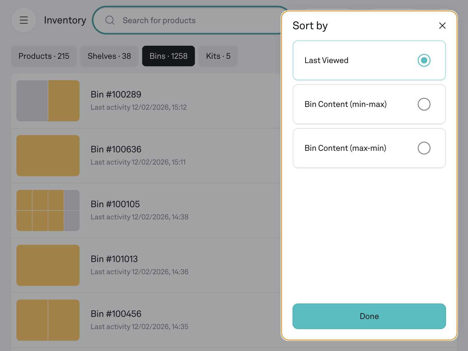 In ‘Bin details’ you can see the contents and number of items in each bin.